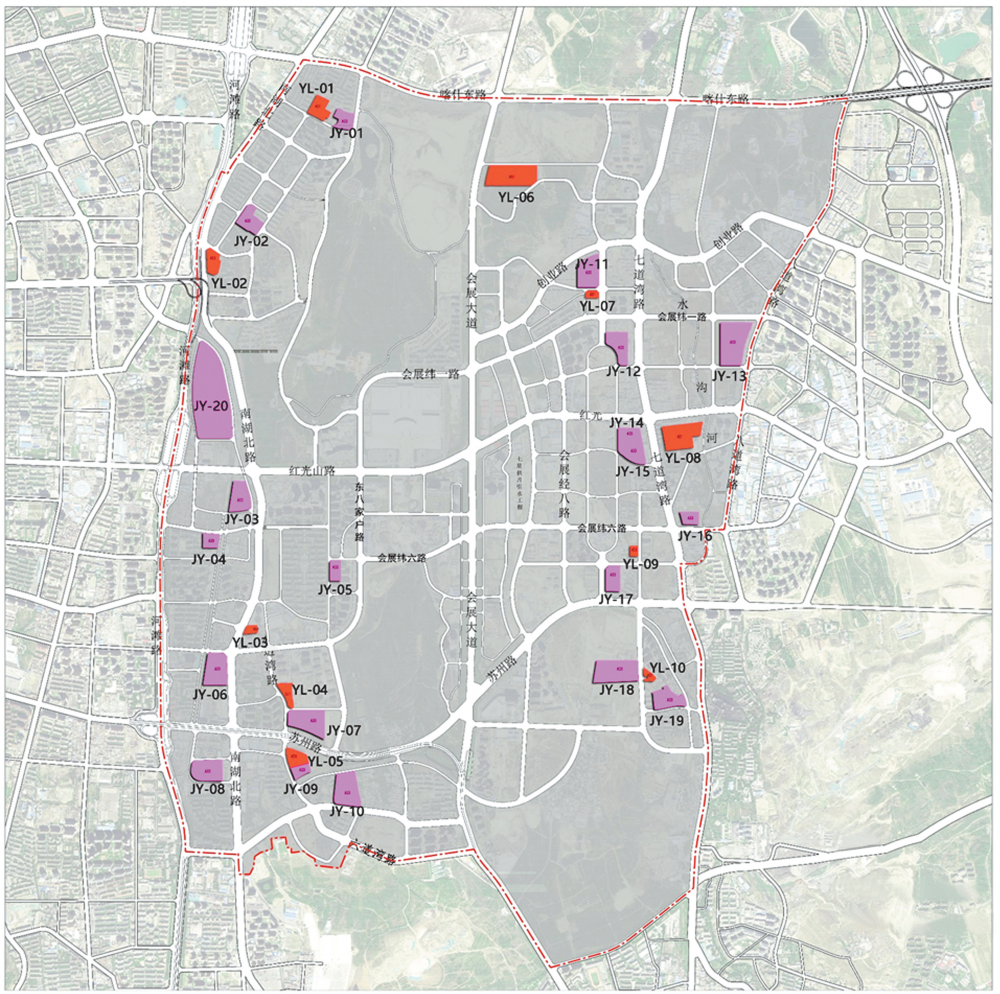 内顺:提升道路等级,加密支路网。为缓解会展中心南北向交通疏散压力,增加东西向疏散通道,提升局部道路等级,沿东西向增设支路,实现场地内部交通通达性。