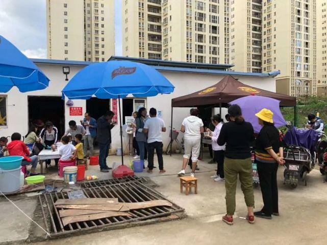 这就成了 30 户居民的临时厨房," 别样幸福城 " 开饭了,茄子和四季豆、凉拌海带丝、云南特色菜红三剁、炖芋头汤 ……