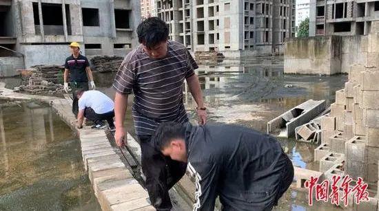 楼上断水,他们熟门熟路地去工地旁的水洼里,把一个小桶拴上绳子,放下水桶打一个翻打水洗脸、洗脚,甚至一个月只能洗一次澡,还去附近小区讨水做饭;