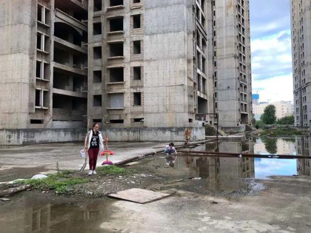 而最近在云南昆明,有这样一个烂尾楼盘。它没有排水系统,一下雨就水漫金山。家里没有厕所,大门口没有楼梯,这 12 栋楼,都是最原始毛坯房。更没有防护措施,要是踩错一个楼梯,就是万丈深渊,也没有窗户,只有一整片的空气 " 落地窗 "。