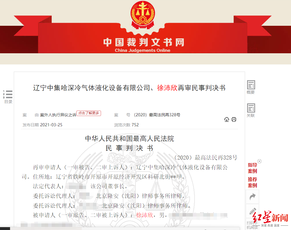 近日,裁判文书网的一份民事判决书出现“徐沛欣”的名字。